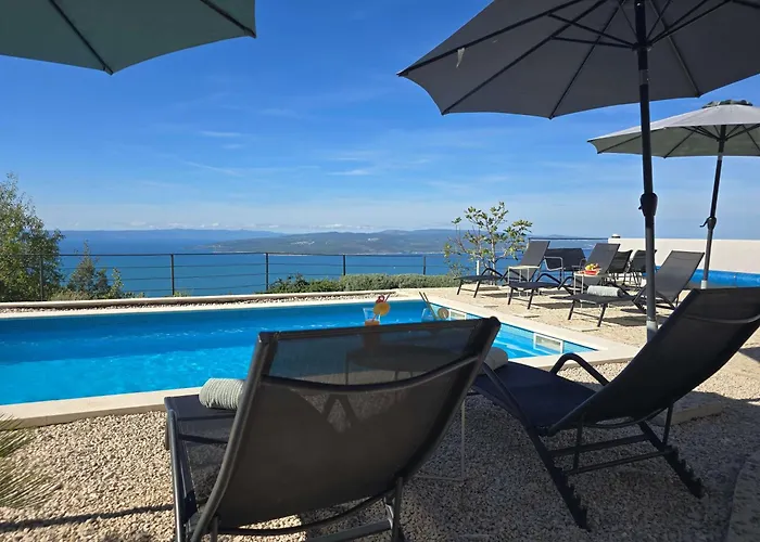 Gli ospiti possono godere di una vista sulla spiaggia sul mare dalla terrazza presso la Villa Adria Horizon Bast, situata a 10 minuti in macchina dalla Spiaggia di Berulia.